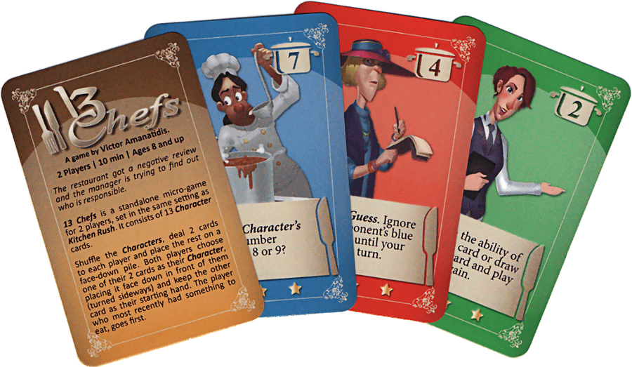 Playing 13 Chefs is a tense and strategic experience, focusing heavily on deduction and guessing. Players need to balance their actions carefully, as each move can reveal or conceal crucial information. The game is quick, typically lasting only a few minutes, making it an excellent fill-in game between longer sessions.