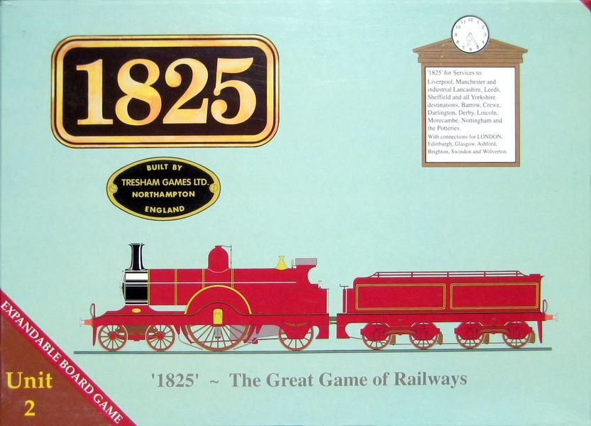 1825 Unit 2 is a board game released in 2000, designed by Tresham Games. It falls under the category of trains and transportation, where players engage in network and route building, stock holding, and tile placement to emerge victorious. The game is intended for 2-4 players aged 12 and above, with a runtime of approximately 180 minutes.