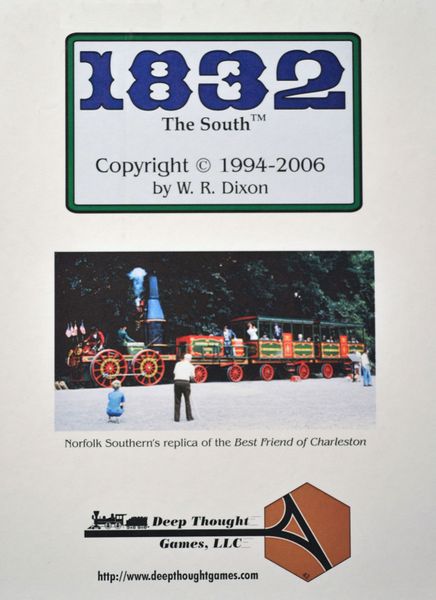1832: The South is a board game released in 2006 that focuses on economic strategy, trains, and transportation in the southern United States during the 19th century. Designed by Deep Thought Games, LLC, Golden Spike Games, and Rusty Robot Games, this game allows players to engage in auction/bidding, network and route building, stock holding, and tile placement mechanics.