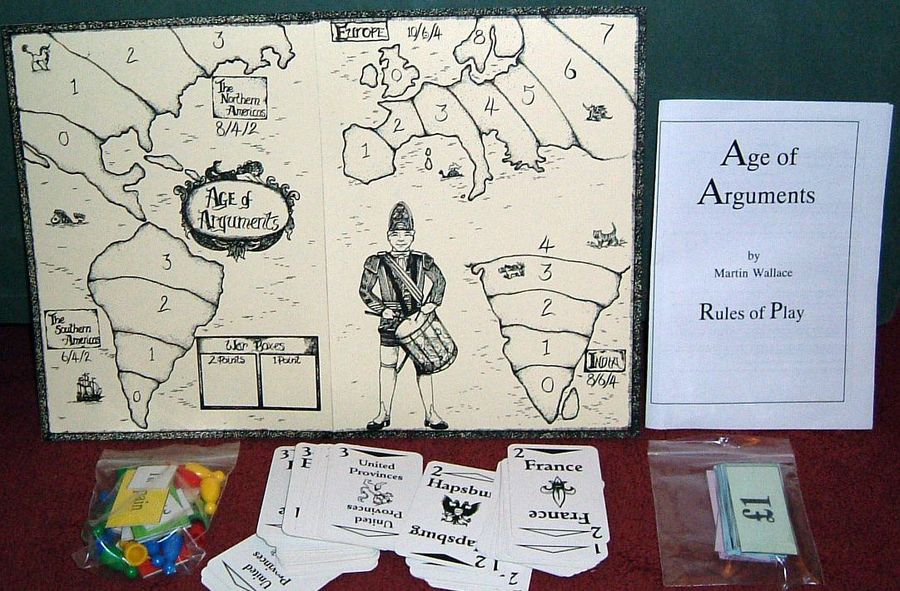 Age of Arguments is a board game released in 1998 by Warfrog Games. It falls under the categories of Age of Reason, Political, and Wargame, making it a strategic and thought-provoking game. With a playtime of approximately 120 minutes and designed for 3-4 players, Age of Arguments is a game that challenges players to engage in political debates and strategic decision-making.
