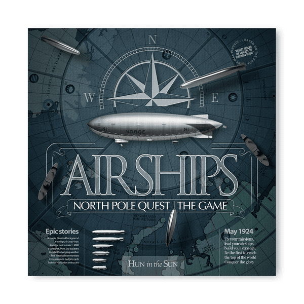 Airships: North Pole Quest is a board game released in 2021, designed by Max Pinucci and illustrated by Hun in the Sun. The game falls under the categories of Adventure, Aviation / Flight, Exploration, and Travel. Players take on the role of adventurers embarking on a daring quest to reach the North Pole using airships.