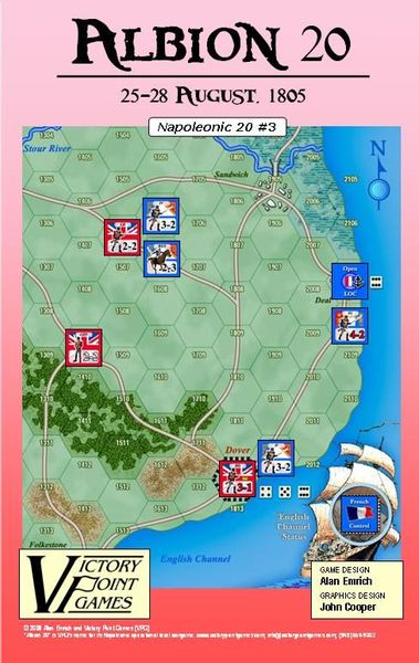Albion 20 is a historical wargame set in the Napoleonic era, specifically focusing on the 1805 campaign in Central Europe. Designed by John R. Cooper and John Cooper, this game was released in 2008 by Victory Point Games. The game is designed for 1-2 players and has a runtime of approximately 50 minutes.