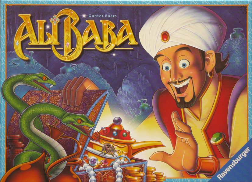 Ali Baba is a board game based on the classic Arabian tale of Ali Baba and the Forty Thieves. Released in 2002 by Ravensburger, the game is designed for 2-4 players, ages 5 and up. The game features stunning artwork by Graham Howells, Joachim Krause, Walter Pepperle, and Foto Rhomberg.