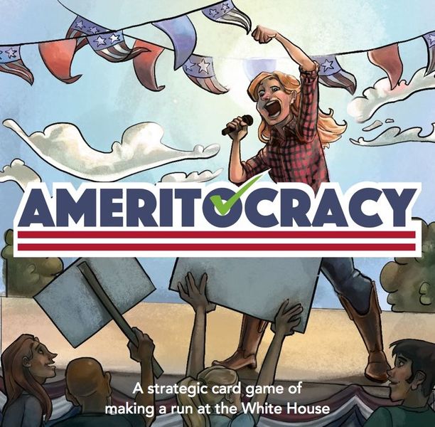 Ameritocracy is a political card game designed by Kristen Pauline and released in in 2016. The game is designed for 2-4 players and has a playtime of 20-60 minutes. In Ameritocracy, players take on the role of political candidates trying to gain the most influence and become the President of the United States.