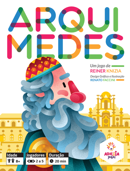 Arquimedes is a board game designed by Reiner Knizia and published by Adoleta Jogos in in 2021. It is a children’s game with an educational focus on math concepts. The game is named after the famous ancient Greek mathematician Archimedes, known for his contributions to mathematics, physics, and engineering.