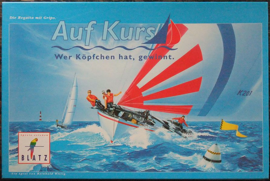 Auf Kurs, a board game released in 1987, was designed by Reinhold Wittig and published by Blatz. It falls under the categories of Abstract Strategy, Nautical, and Racing games. The game involves players navigating their ships through the seas using action points and point-to-point movement.