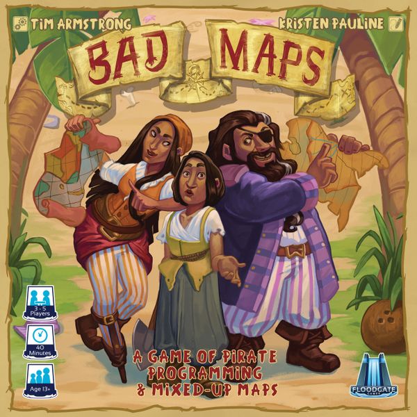 Bad Maps is a board game released in 2019 that puts players in the shoes of pirates searching for treasure on the high seas. Designed by Kristen Pauline and Peter Wocken, the game is published by Floodgate Games and falls under the category of pirate-themed games. With a unique mix of action queue, betting, and bluffing mechanics, Bad Maps offers an exciting and strategic gaming experience for 3-5 players.