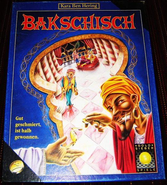 Bakschisch is a board game released in 1995 by Goldsieber Spiele. The game is set in an Arabian adventure theme, where players take on the role of merchants trying to outbid each other in an auction-style gameplay.