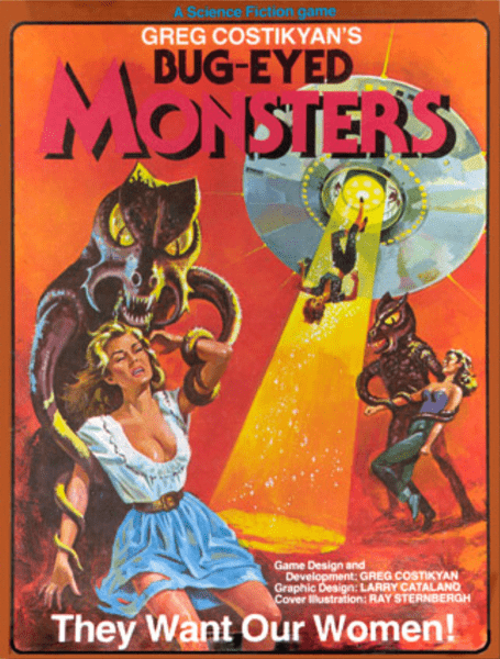 Bug-Eyed Monsters is a science fiction wargame released in in 1983. It is designed by Larry Catalano and Ray Sternbergh, featuring artwork by Kokusai-Tsushin Co., Ltd. and West End Games. The game is set in a futuristic world where players take on the roles of alien races fighting for supremacy.