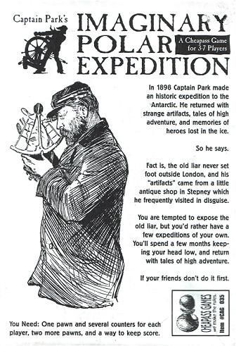 Captain Park’s Imaginary Polar Expedition is a board game released in 2002 by Cheapass Games. Designed for 3-7 players, this game challenges players to navigate through a treacherous imaginary polar landscape in search of valuable resources. With a runtime of 45 minutes and suitable for players aged 10 and up, this game is a test of strategy and resource management.