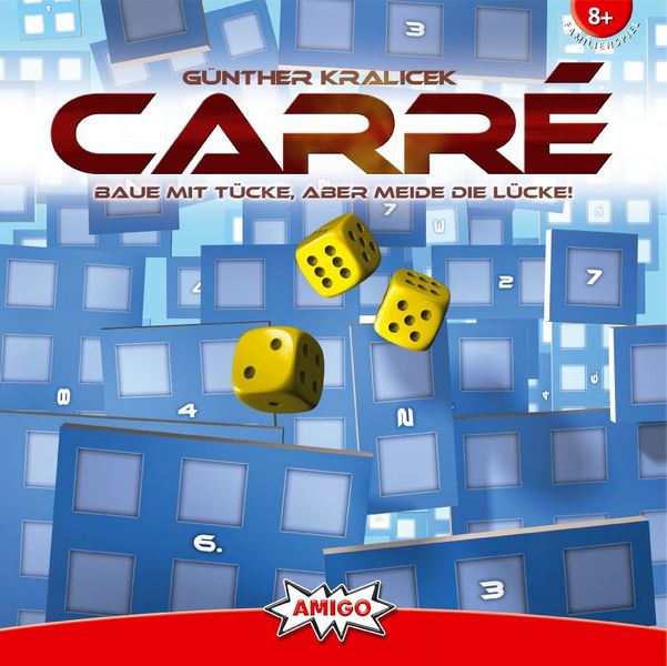 Carré is an abstract strategy board game that was released in in 2011. It is designed by Claus Stephan and Mirko Suzuki, and published by AMIGO. The game is designed for 2-4 players, with a runtime of about 30 minutes. It is recommended for ages 8 and up.