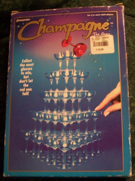 Champagne: The Game is a party game that was released in in 1996. It is designed for 2-6 players, with the best player count being 2-3. The game is known for its action/dexterity mechanics and stacking and balancing gameplay.