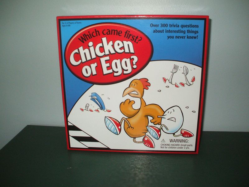 Chicken or Egg? is a trivia board game that was released in in 2007. It is designed for 2-4 players and has a runtime of about 20 minutes. The game revolves around the age-old question of which came first, the chicken or the egg. Players will have to answer trivia questions and move their pieces across a modular board to reach the finish line.