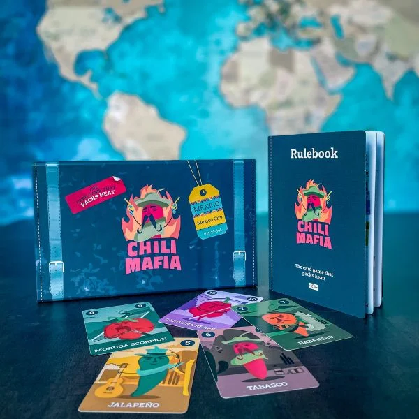 Chili Mafia is a card game designed by Krisztina Felmery and Tamas Leidal, and published by Lemery Games in in 2022. The game falls under the categories of Mafia and Party Game, catering to 2-8 players with a runtime of 20-40 minutes. The game is suitable for players aged 10 and above.