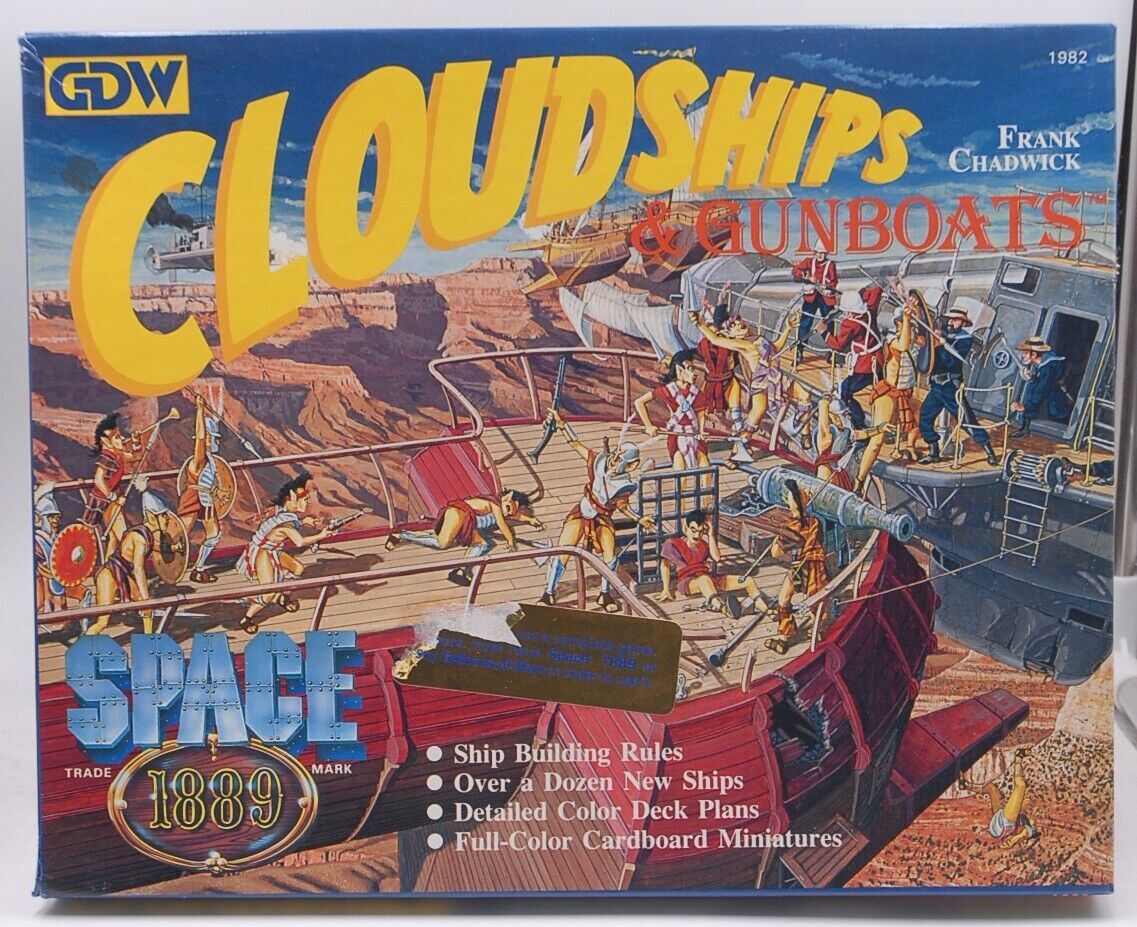 Cloudships & Gunboats is a board game set in the world of Space: 1889, a science fiction RPG that takes place in an alternate history where space travel is possible in the late 19th century. The game was first published in 1989 by Game Designers’ Workshop (GDW) as a supplement to the Space: 1889 RPG. It was designed by Frank Chadwick, who also created the Space: 1889 RPG. The game features aerial combat between cloudships and gunboats in the skies of Mars, with mini-scale deckplans, cardstock minis, rules, and ship diagrams.