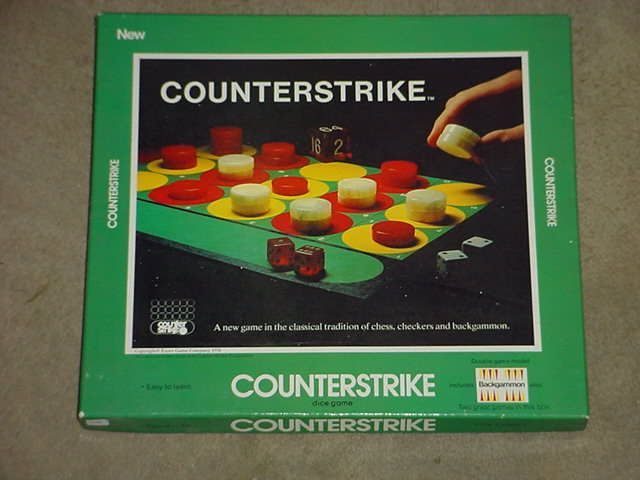 Counterstrike is an abstract strategy board game that was released in 1976 by Essex Game Co. The game is designed by Roger Tuckerman and is designed for 2 players. It falls under the categories of Abstract Strategy and Dice games, with gameplay involving elements of betting and bluffing, as well as roll and move mechanics.