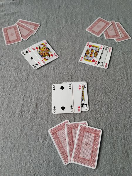 To set up Cucumber, each player is dealt six cards. The player to the dealer’s left leads any card to the first trick. Cards played are placed face-up on the table and can be inspected by any player at any time.