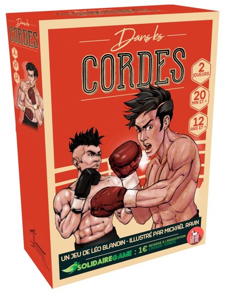 Dans les Cordes is a sports-themed card game designed by Mickaël Ravin and released in in 2019. The game is designed for 2 players and has a runtime of around 20 minutes. The game’s name translates to “In the Ropes” in English, hinting at its boxing theme. The game is published by Chèvre Edition and falls under the categories of card game and sports, with a primary mechanism of hand management.