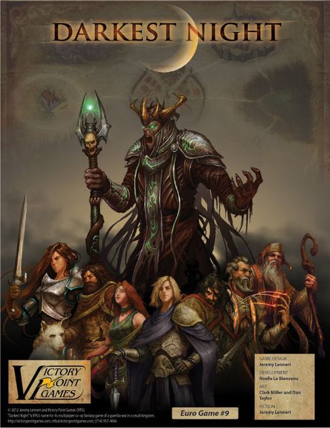 Darkest Night is a cooperative board game that was released in in 2012. Designed by Clark Miller and Dan Taylor, the game is set in a dark and gloomy fantasy world filled with horror and adventure. Players work together to defeat the evil Necromancer and his minions before they plunge the land into eternal darkness.