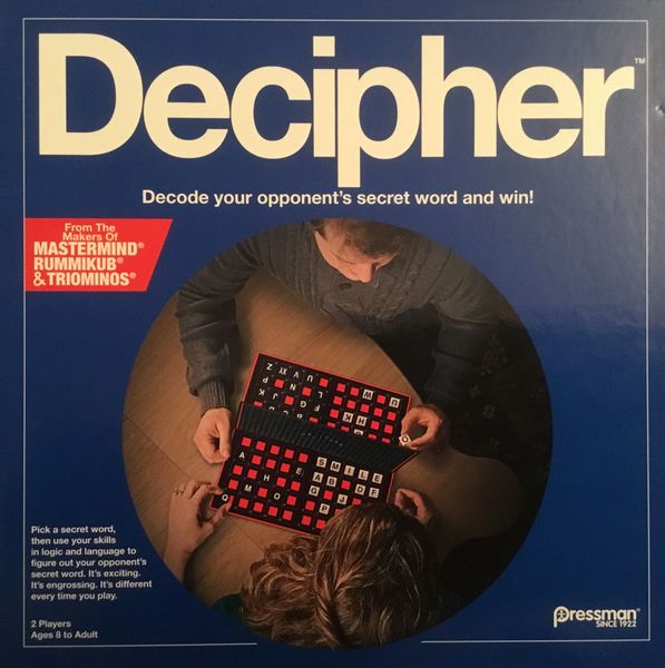 Decipher is a classic board game that was first released in in 1972. It is a word game that combines deduction and pattern recognition, making it a fun and engaging experience for players of all ages. The game has been designed by Pressman Toy Corp. and offers a unique gameplay experience that challenges players to use their thinking and deduction skills to decipher hidden words.
