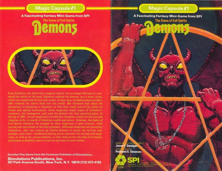 Released in 1979, Demons: The Game of Evil Spirits is a fantasy board game that immerses players in a medieval world where they must confront and defeat evil spirits. Designed by Howard Chaykin and Redmond A. Simonsen, this game is known for its unique gameplay mechanics and immersive storytelling elements. With stunning artwork by SPI (Simulations Publications, Inc.), Demons offers players a challenging and engaging gaming experience.