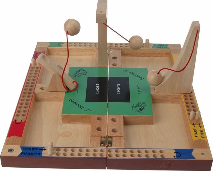 – Demolition: Players use the catapult, ramp, or pendulum to attempt to knock down the tower.