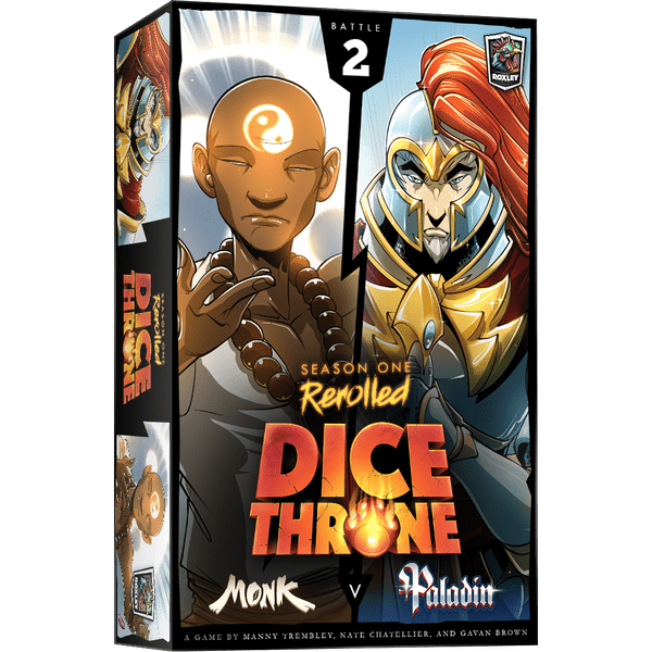 Dice Throne: Season One ReRolled – Monk v. Paladin is an expansion set for the popular dice and card game, Dice Throne. Released in 2021 by the publisher Roxley, this expansion features two new characters, the Monk and the Paladin, battling it out in an epic fantasy showdown. Designed by Nate Chatellier and Manny Trembley, this game is known for its fast-paced gameplay and strategic decision-making.