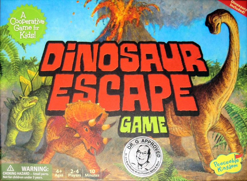 Dinosaur Escape is a cooperative board game designed by Peaceable Kingdom and released in in 2015. It is designed for children aged 4 and up, making it a great option for families looking for a fun and engaging game to play together.