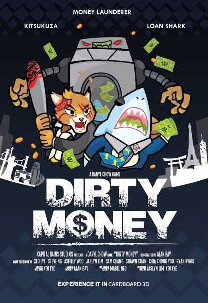 Dirty Money: The Money Laundering Game is a board game released in 2021 by Capital Gains Studio. Designed by Daryl Chow and illustrated by Alan Bay, the game falls under the economic and mafia categories, focusing on the concept of money laundering. With a runtime of 30–45 minutes, the game is suitable for 2–5 players aged 12 and above.