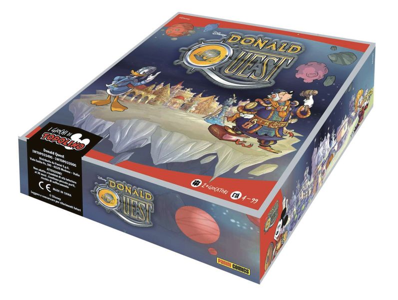 Donald Quest is a board game that was released in 2020 by Panini Games. It is a card game that combines elements of comic books, fantasy, and fighting. The game is designed for 2-4 players, with a runtime of 15-30 minutes and is suitable for players aged 6 and above. The game features mechanisms such as card play conflict resolution, hand management, push your luck, take that, and variable player powers.