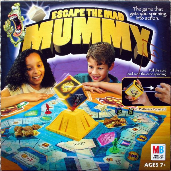 Escape The Mad Mummy is a board game released in 2004 by Milton Bradley. It is designed for 2-4 players, aged 7 and up, and falls under the Adventure and Children’s Game categories. The game involves trying to escape from a mad mummy’s tomb by rolling and spinning dice to move around the board.