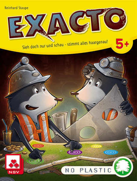 Exacto is a children’s game released in 2022 by designer Reinhard Staupe and published by Nürnberger-Spielkarten-Verlag. The game is designed for 2-6 players, with a quick runtime of 15 minutes and is suitable for ages 5 and up. The game revolves around pattern recognition, challenging players to match shapes and colors in a fun and engaging way.