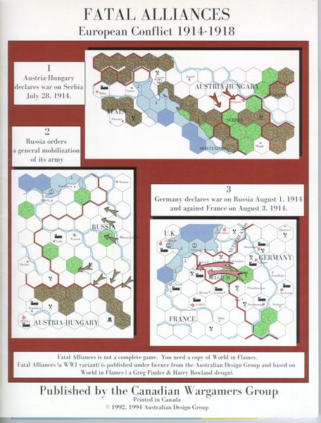 Fatal Alliances II is a wargame that focuses on World War I, specifically the political and military aspects of the conflict. It was released in 1994 and designed by the Australian Design Group and Canadian Wargamers Group. The game is known for its attention to detail and historical accuracy, providing players with a deep and immersive experience of the war.