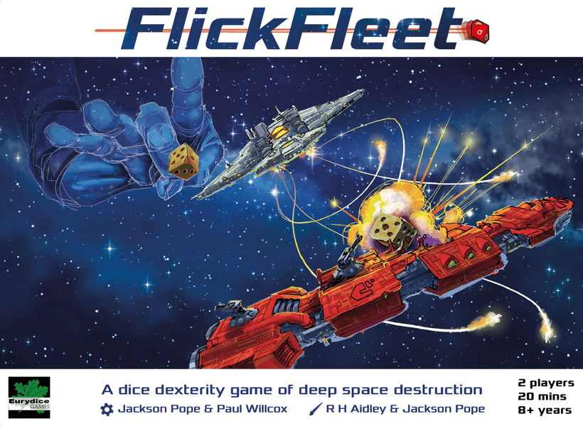 FlickFleet is a board game released in 2018 by designers R. H. Aidley and Jackson Pope. It is a fast-paced, two-player action/dexterity game set in a science fiction universe. Players take on the roles of rival factions competing in space battles using dice rolling and flicking mechanics.