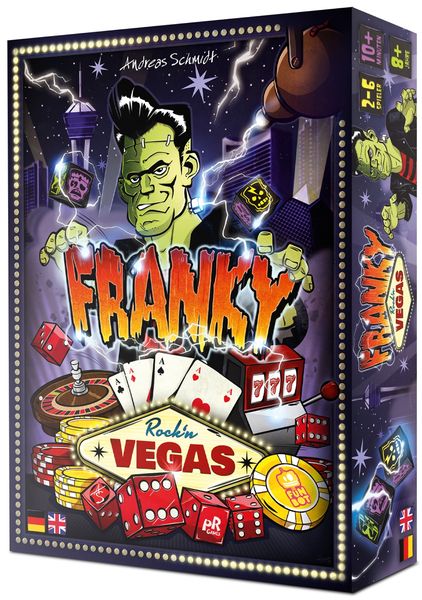 Franky: Rock’n Vegas is a board game released in 2019, designed by Ronny Libor and illustrated by funbot. It falls under the categories of Dice and Fantasy, with gameplay centered around dice rolling, paper-and-pencil, push your luck, and set collection mechanics.
