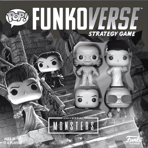 The Funkoverse Strategy Game: Universal Monsters 100 is part of the Funkoverse series of board games created by Funko Games. Released in 2022, this particular edition features characters from the classic Universal Monsters franchise, including Dracula, Frankenstein, Bride of Frankenstein, and The Invisible Man.