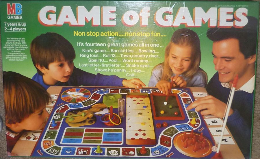 The Game of Games board game was released in 1986 by designers Gil Druckman and A. Weiner. It is a fun and engaging game that combines elements of action, dexterity, memory, racing, sports, and word games. With a playing time of 30-60 minutes, it is suitable for players aged 7 and above.