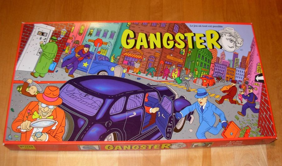 Gangster is a humorous mafia-themed board game released in 1994 by Éditions Gladius International, Inc. The game is designed for 2-6 players aged 9 and above, with a runtime of approximately 90 minutes. Players take on the roles of gangsters vying for control of the city through various criminal activities.