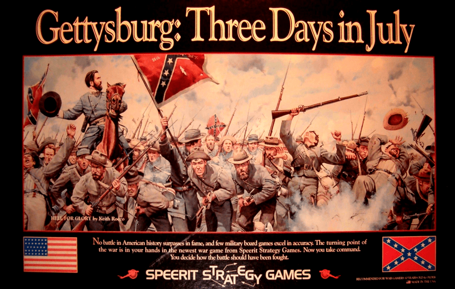 Gettysburg: Three Days in July is a historical wargame that simulates the famous Battle of Gettysburg, which took place during the American Civil War in in 1995. Designed by Keith Rocco and published in 1995, the game allows players to take on the roles of Union and Confederate commanders as they maneuver their troops across the battlefield.