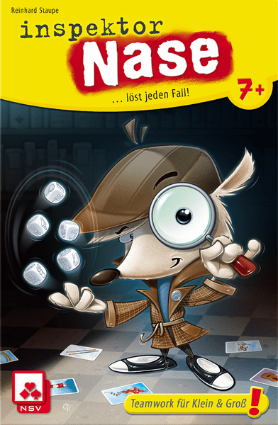 Inspektor Nase is a children’s cooperative deduction board game designed by Reinhard Staupe and published by Nürnberger-Spielkarten-Verlag in in 2021. The game challenges players to work together to solve mysteries using deductive reasoning and dice rolling mechanics.