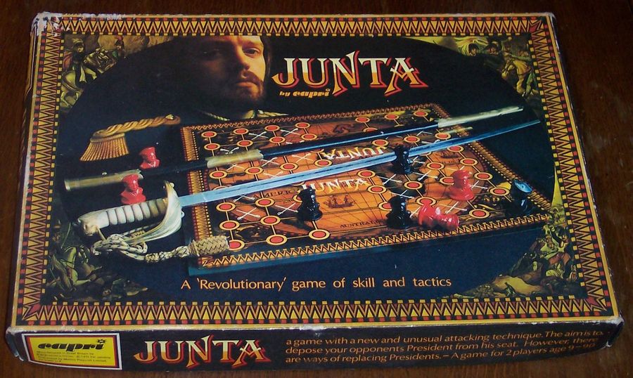 *Junta* is known for its complex and engaging gameplay, filled with political intrigue, corruption, and strategic maneuvering. Players must navigate elections, assassinations, and military coups to secure their positions and wealth. The game encourages negotiation, betrayal, and strategic planning, making it a favorite among fans of complex board games. Despite its lengthy gameplay, which can last from 3 to 7 hours, *Junta* maintains a dedicated fan base due to its unique blend of politics and strategy.