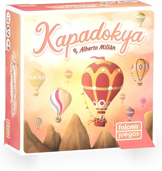 Kapadokya is an abstract strategy board game released in 2021 by Falomir Juegos. Designed by Alberto Millán and featuring artwork by Lorena Gestido, the game is set in the beautiful region of Cappadocia, Turkey, known for its hot air balloons and unique landscapes. The game is designed for 2 players, with a runtime of 15-30 minutes and suitable for players aged 10 and above.