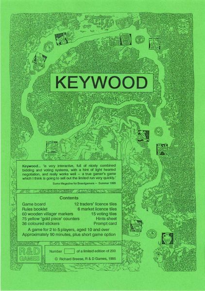 Keywood is a civilization board game that was released in 1995 by R&D Games. It is designed for 2–5 players, with a recommended player count of 3–