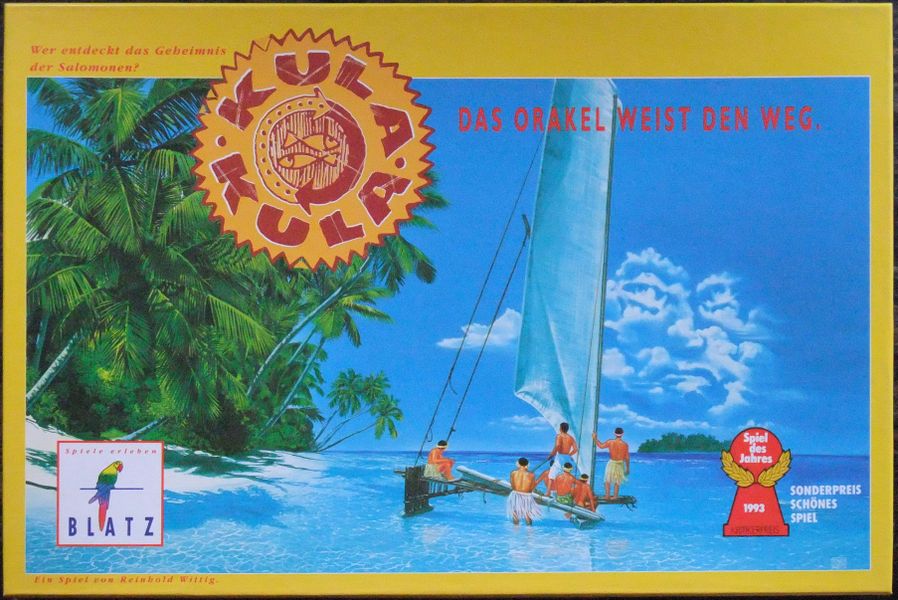 Kula Kula is a board game that was released in 1991 by designer Blatz and Edition Perlhuhn. It falls under the nautical category and incorporates various game mechanisms such as memory, point-to-point movement, push your luck, and set collection. The game is designed for 3 to 5 players, with a recommended age of 10 and up.