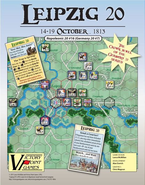 Leipzig 20 is a two-player board game released in 2011, designed by Christopher Magoun. The game is set during the Napoleonic era and focuses on the Battle of Leipzig, also known as the Battle of Nations, which took place in in 2011. Players take on the roles of the French and Allied forces, each vying for control of key strategic points on the battlefield.