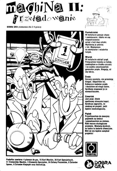 Machina II: Przeładowanie is a board game released in 2006, designed by Adam Hammudeh and Michał Oracz. It is known for its unique theme of humor in the industry and manufacturing world. The game was published by Portal Games and is suitable for players aged 11 and above, with a playing time of around 40 minutes.