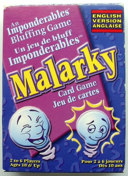 Malarky is a card game that was first released in in 2000. It is a bluffing and trivia game that requires players to use their storytelling skills to deceive their opponents. The game is designed for 2-6 players, with a runtime of around 30 minutes. Players must be at least 10 years old to play.