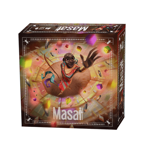 Masai is an abstract strategy board game designed by Saulo NT and released in in 2022. The game is set in the African savannah and draws inspiration from the Masai tribe known for their intricate beadwork and unique cultural traditions. Players take on the role of Masai warriors competing for influence and control over key areas on the board.