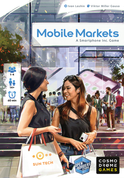 Mobile Markets: A Smartphone Inc. Game is a board game released in 2021 by Cosmodrome Games. Designed by Ivan Lashin and featuring artwork by Viktor Miller Gausa, this game is set in the world of smartphone manufacturing and economic competition. Players take on the roles of smartphone companies, aiming to dominate the market by developing innovative technologies, expanding production capabilities, and outmaneuvering their rivals.