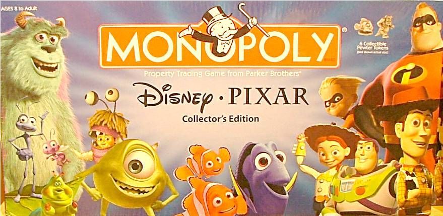 Monopoly: Disney/Pixar is a themed version of the classic Monopoly board game, featuring characters and locations from popular Disney and Pixar movies. Released in 2005, this edition brings a magical twist to the traditional Monopoly gameplay by incorporating beloved animated characters from the Disney and Pixar universes.